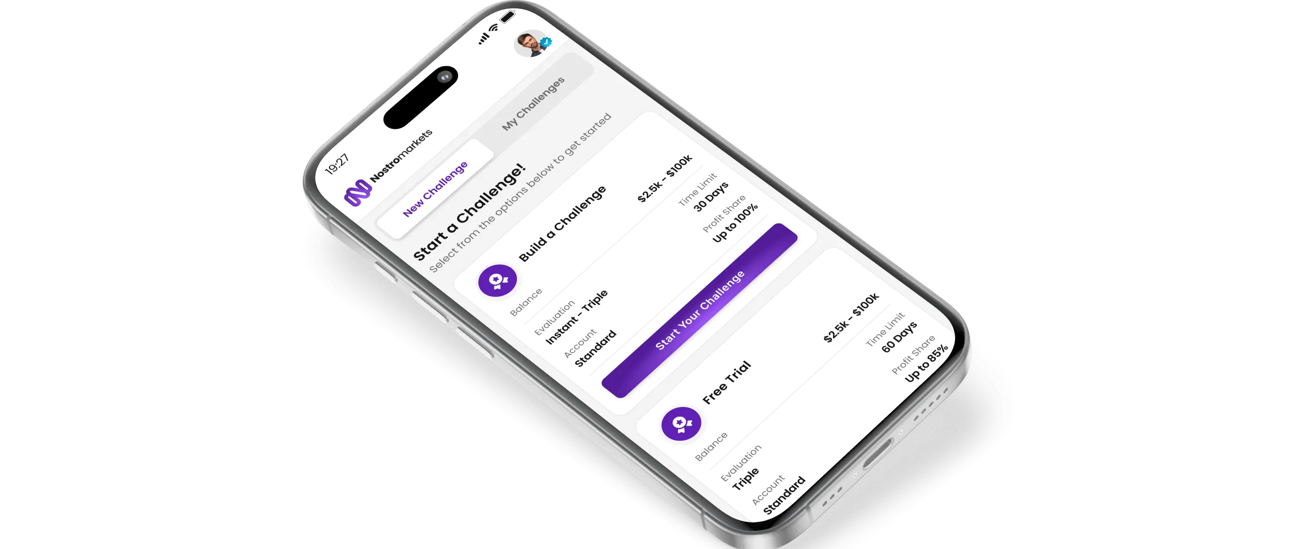 Select a challenge that suits your trading style.